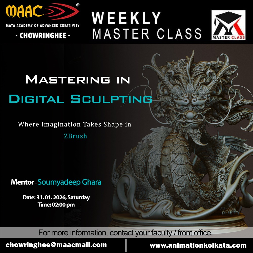 MAAC-Chowringhee centre is well equipped with a high-end experienced training team who expertise in 3D/2D Animation, VFX, Gaming, Graphic & Web Design courses.